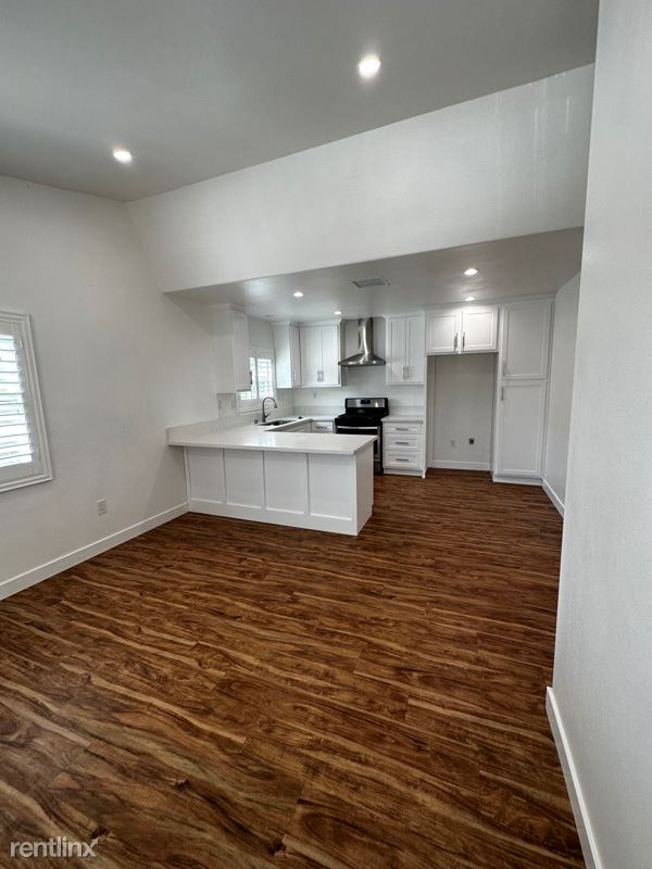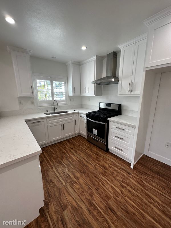Beautifully remodeled 3 bedroom 2 bathrooms stand alone home. This home is a part of four units, however there are no common walls. Features a charming large private backyard, flowing floor plan with center hall, high ceilings, wooden window shutters and a very chic back bedroom with fireplace. New central heating and AC. Laundry room. The home is situated far away from the street on a flag shaped lot with gated entrance. Very private with two drive-in parking spaces. Close to freeways, shopping centers and transportation.