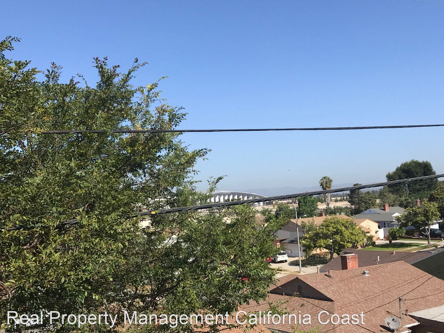 Charming Upstairs Fourplex in City of Inglewood NEW appliances included! - 2 BD 1  BA Charming Upstairs Fourplex in the City of Inglewood. The unit features a taupe carpet throughout for a cozy feel. Clean kitchen equipped with NEW stainless refrigerator, gas stove, and plenty of storage for all your kitchen gadgets. Step into a light and bright large living room with sliding glass doors with access to a large patio with sweeping views of SoFi Stadium—spacious bedrooms with equally spacious closets. Added bonus is the A/C and energy-efficient windows! Lovely unit waiting to be called home. One assigned parking space. No Pets. The tenant pays for gas, electric, water, and trash