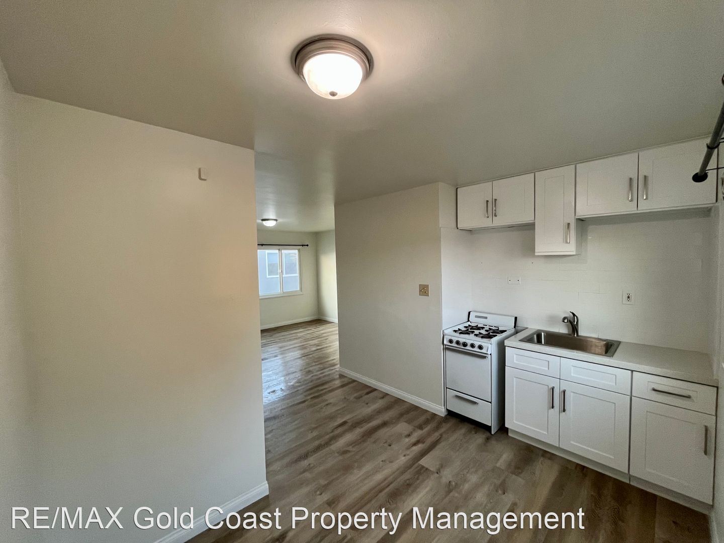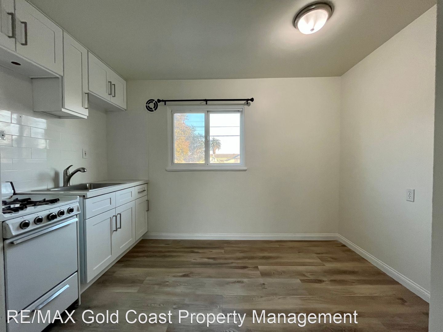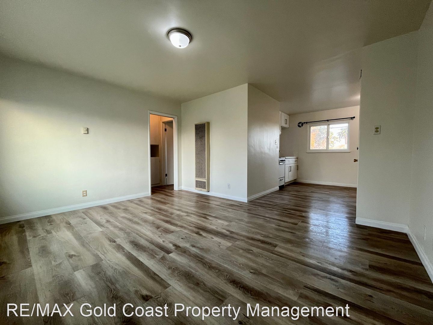 Enter the property to be greeted by the spacious and open living room and kitchen. The kitchen has a dining area and freshly painted white cabinets. The living room has a large window that provides a lot fo natural light.