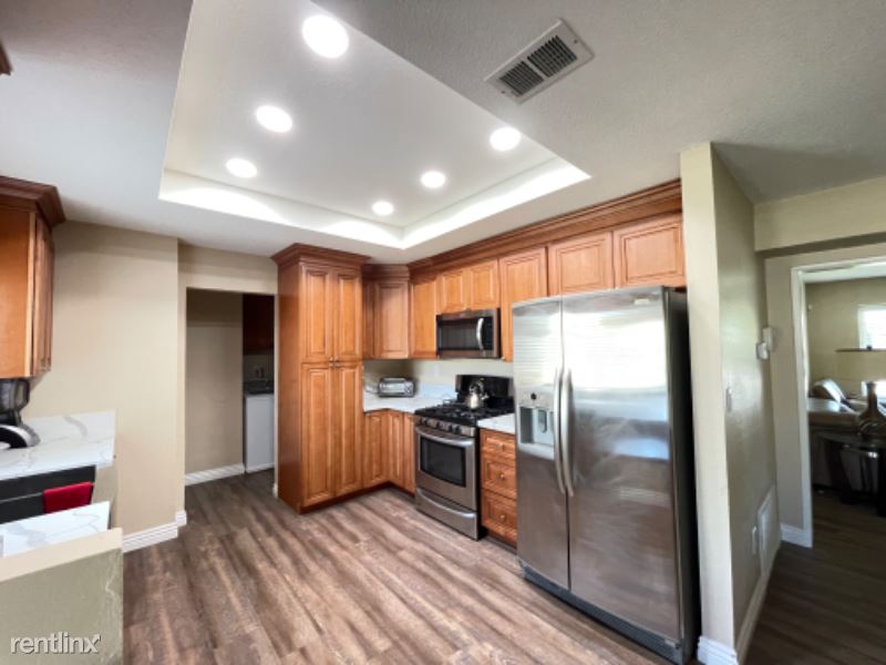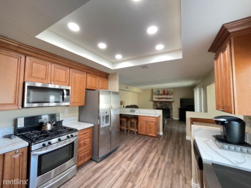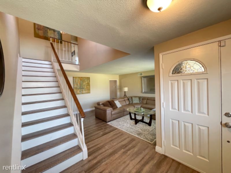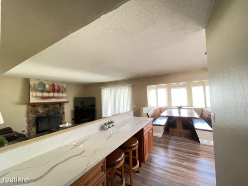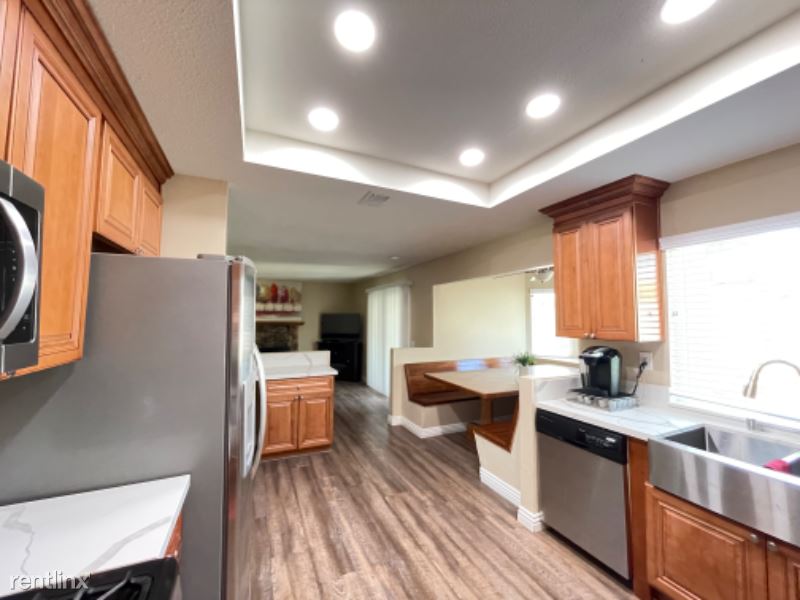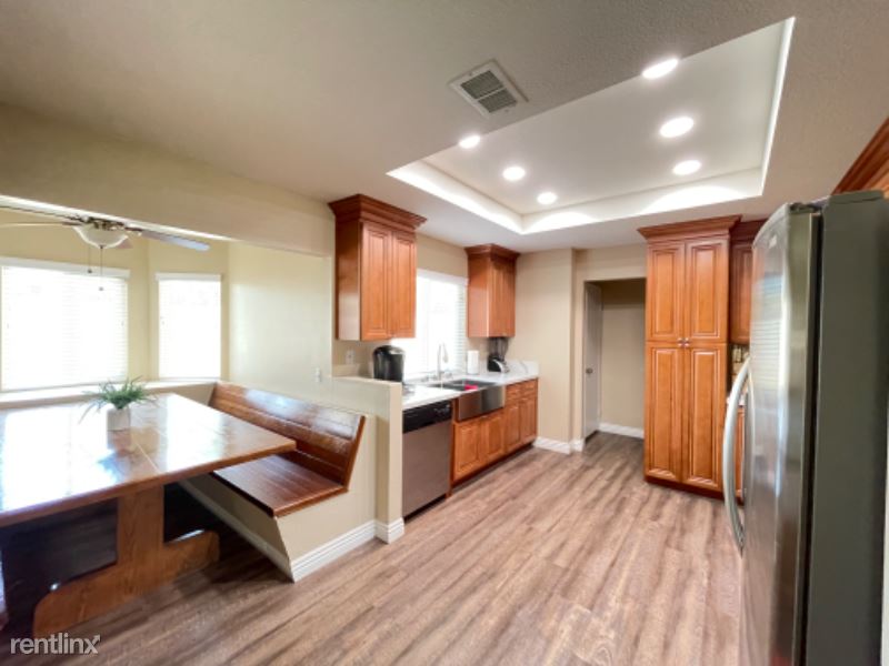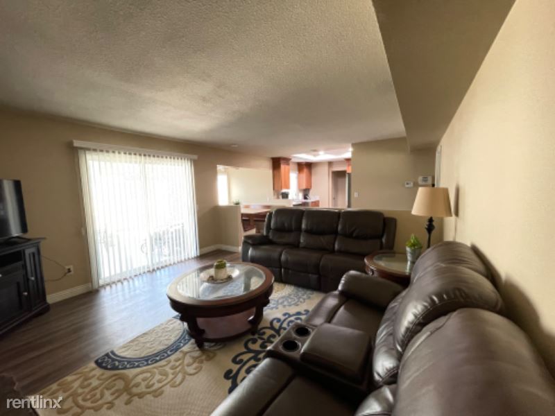 Large FULLY FURNISHED (all utilities included) Two Story 4BR 2.5BA, 3 Car Garage 1970 sq. ft. home fully renovated in early 2022. Home offers new luxury vinyl throughout, new paint inside/out, with renovated kitchen/bathrooms. All bedrooms located on 2nd floor with 1/2 bath on 1st floor. Kitchen open to custom built-in dining area, bar top seating and family room. Separate oversized living room area and a large fully-enclosed backyard with a new brick wall and oversized gate. Home comes fully furnished with everything you need to settle in, including all furniture, brand new mattresses, kitchen appliances/accessories, washer/dryer, TVs, etc. Automatic garage door opener and gardener provided.