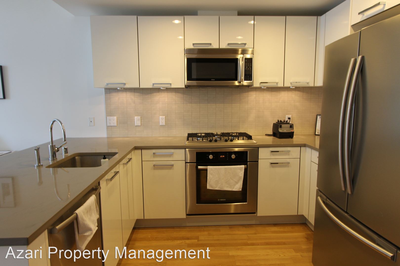 Kitchen has all upgraded Bosch appliances - Dishwasher, Stove, Microwave, Refrigerator. Beautiful White European Style Cabinets