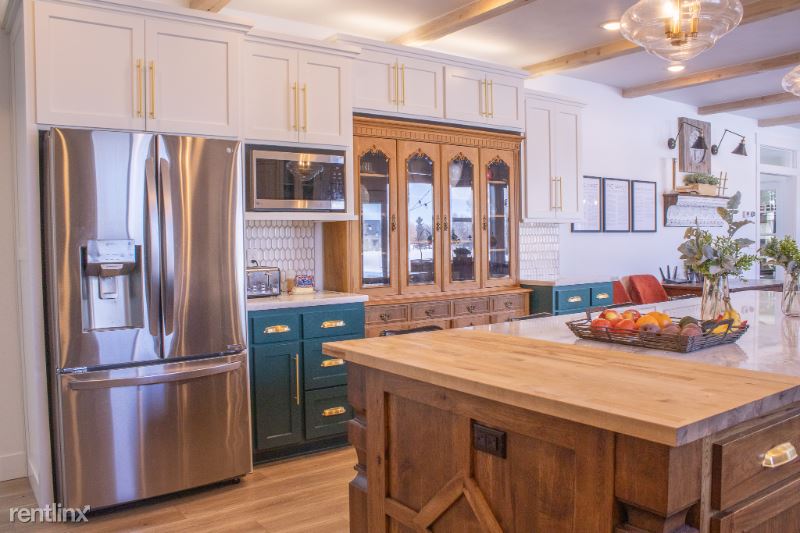Spacious Country Manor located east of Rigby, built in 2019. Serene tree-filled views on 2.5 acres populated by visiting deer. This home is fully furnished and has a beautiful spacious kitchen open to a comfortable living room with fireplace, a formal dining room, a charming music room, and a cozy family room with pellet stove and an adorable playroom underneath a cute little loft. Washer and dryer are included in the inviting laundry room. There is air conditioning throughout as well as forced air heat, a large 3 car garage, and a sizeable yard with a back patio. Lawn care will be provided.