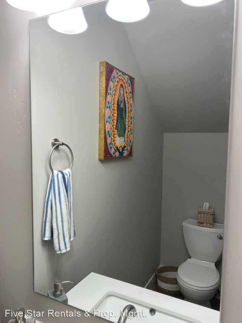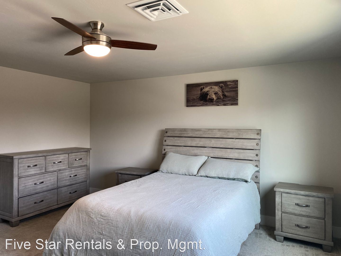 The upstairs is home to a large queen master bedroom with full bathroom en suite. Down the hall is a second queen bedroom and an office with a sleeper sofa. The second level also has a shared full bathroom along with a laundry area.