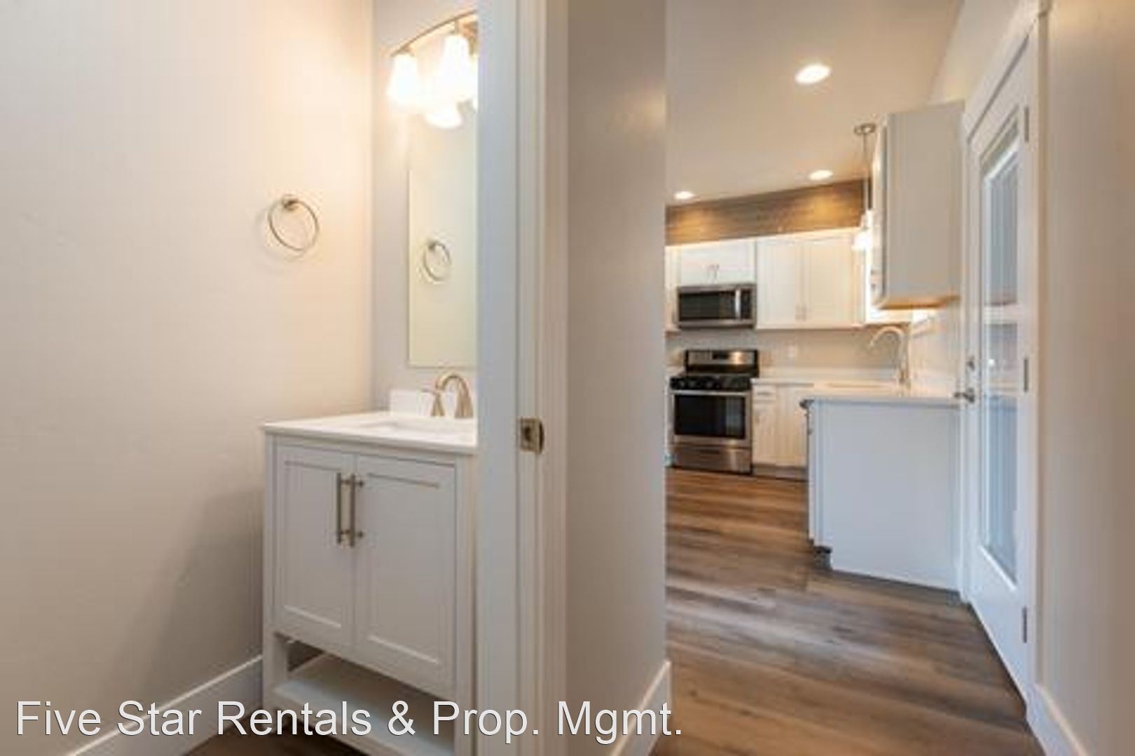 Enter from the back patio entrance to a kitchen with new appliances and open concept dining and living area. The main floor also has a powder room off the kitchen.