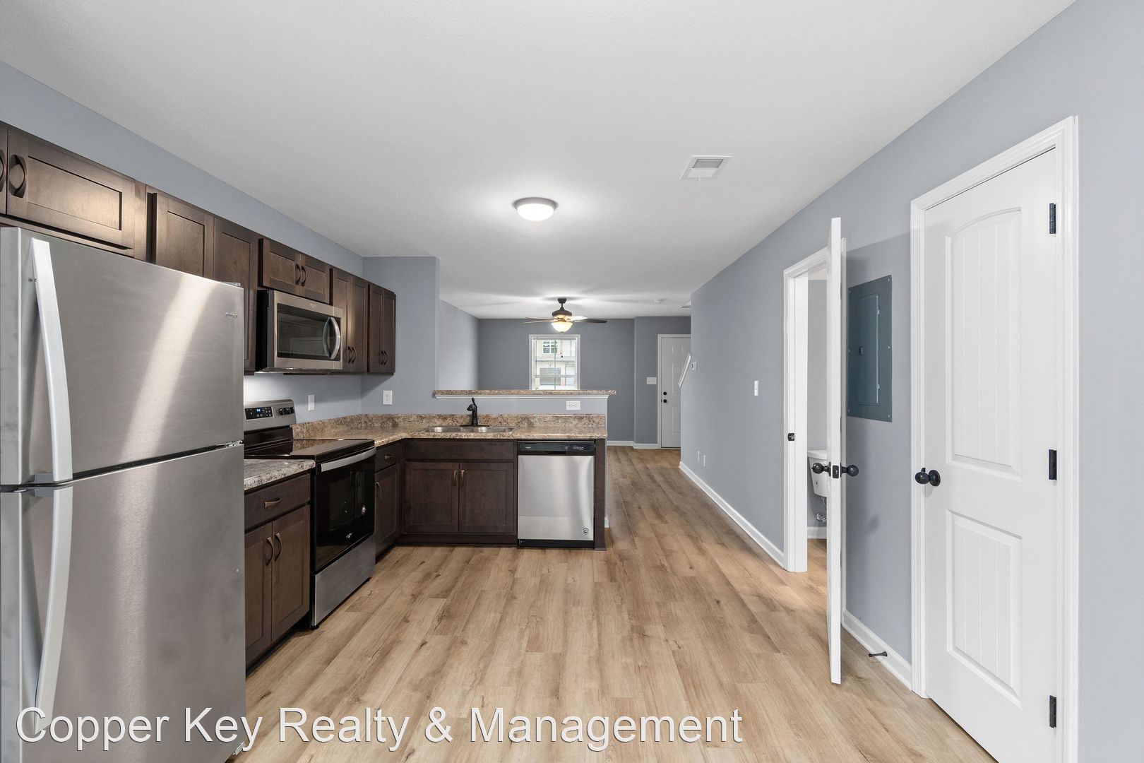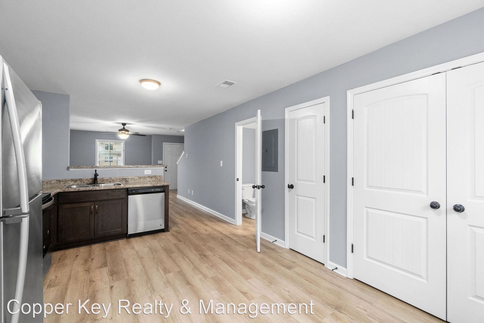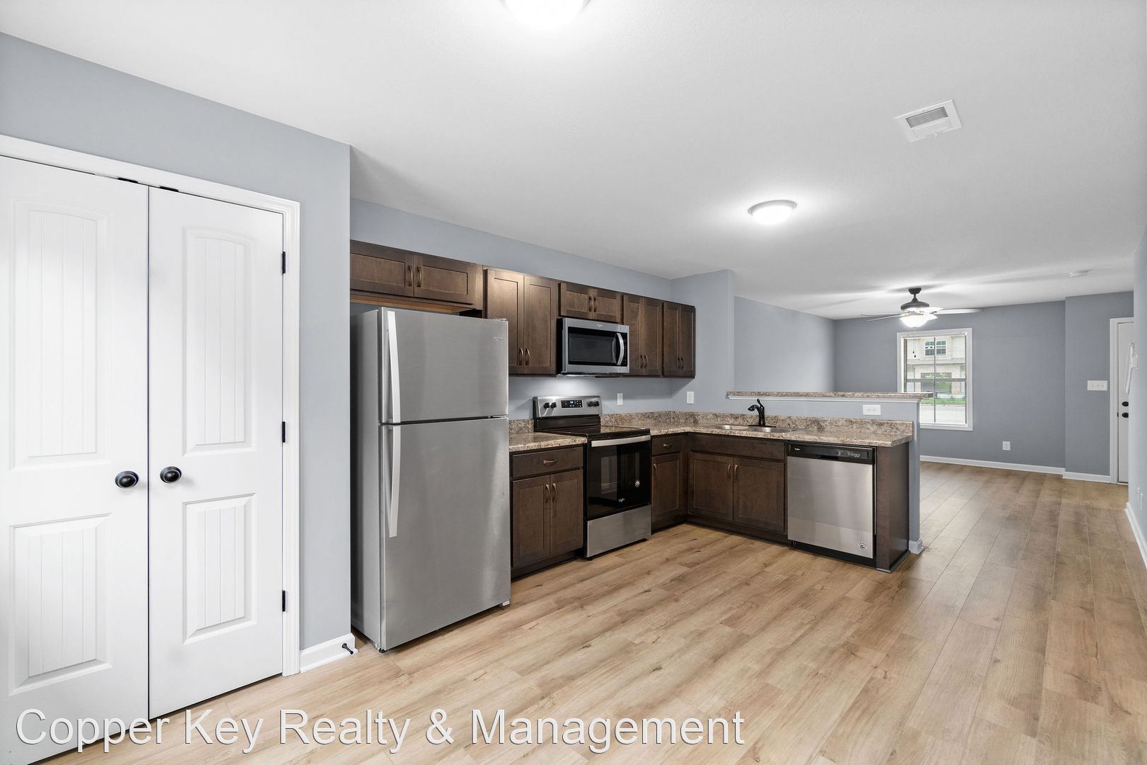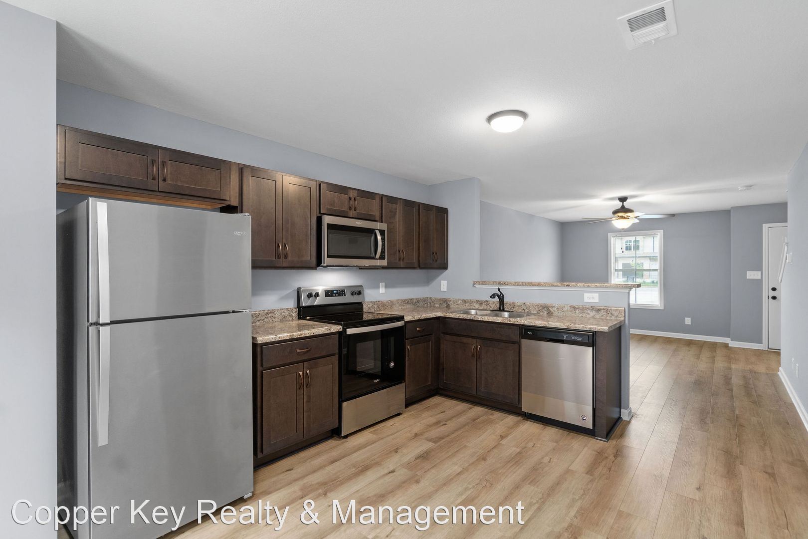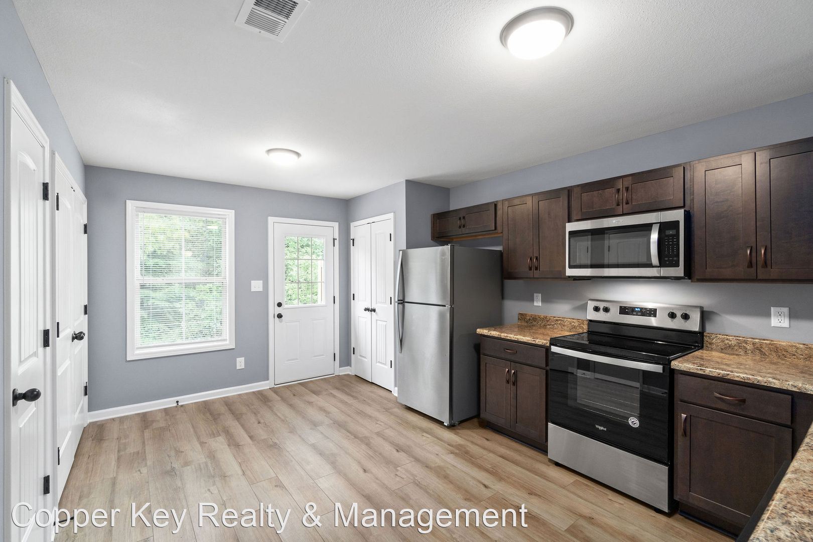 Pet Friendly Two Bedroom! - TWO WEEKS FREE RENT! Beautiful two bedroom, two and a half bath town homes, conveniently located between 101st & Wilma Rudolph, featuring laminate flooring throughout main level, spacious living room, large eat in kitchen with stainless steel appliances & pantry, first floor powder room, two primary suites with private baths & XL closets, washer/ dryer& trash included! Pet Friendly! $40/mo water charge. Pet Rent Scale - Dogs under 30lbs: $15.00 per month - Dogs 30-40lbs: $20.00 per month - Cats: $30.00 per month