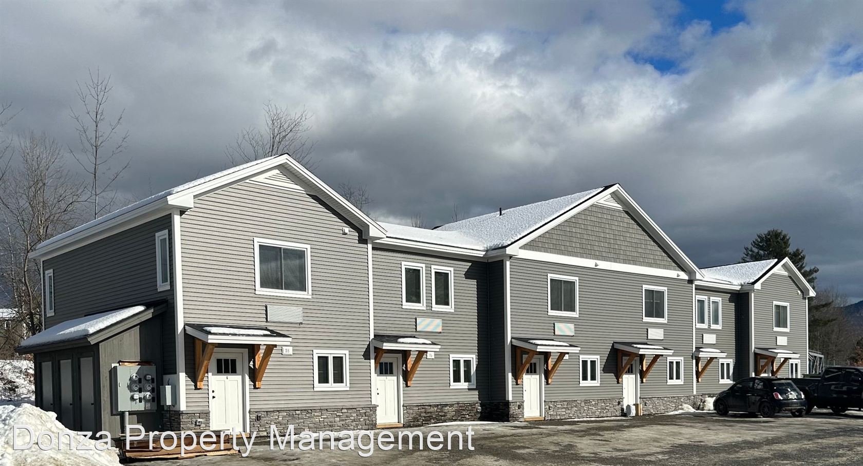 Two Bedroom Townhouse - Beautiful brand 2 bedroom townhouse located on Rail Trail Lane (off of Bridge Street). Your own front door and nobody below or above you. Upstairs two bedrooms with large closets with built-ins, full bath and large closet with he washer and dryer and linen closet. Bedrooms have AC units. Downstairs walk into a mudroom with large closet and powder room. Kitchen has tons of cabinets, gas range, refrigerator, dishwasher and granite countertops. Open living/dining room with door to outside patio. Hard floors throughout. Building has 6 side by side townhouses. Each townhouse has its own 5'x5' shed on side of building. Mailboxes on property. Direct access to Lamoille Valley Rail Trail. Located on a very private property but still close to town. Approved pets are allowed for an additional monthly fee.