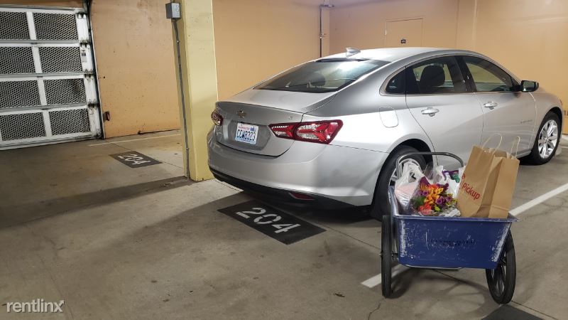 Gated, Secured, 2 EV Ready reserved spaces in parking garage with large storage unit.